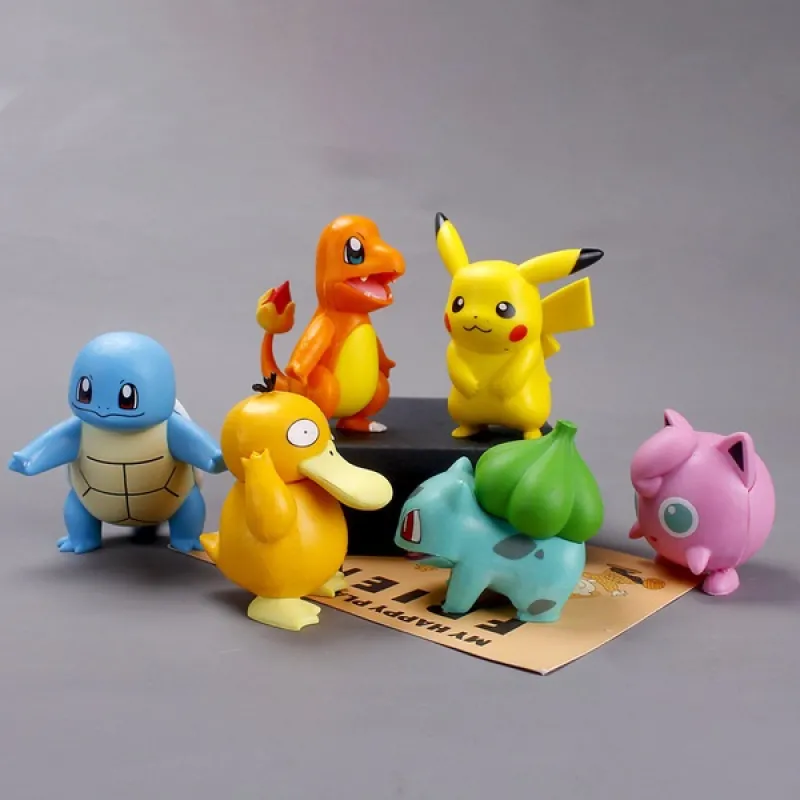 Collect all your favorite Pokémon with this 6-piece action figure set featuring Pikachu, Psyduck, Charmander, Squirtle, Bulbasaur, and Jigglypuff. Durable and perfect for fans ages 3 and up.